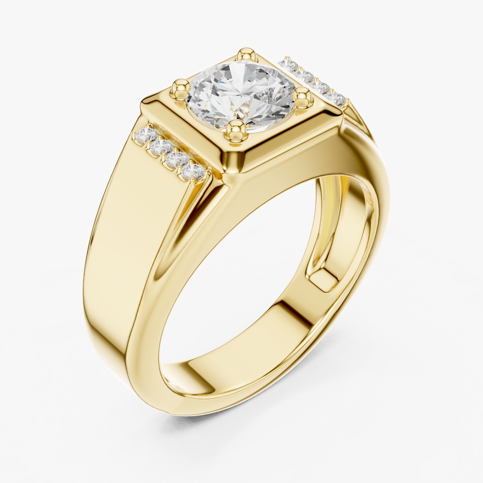 A bold and elegant men’s diamond ring featuring a brilliant round-cut center stone with diamond-accented shoulders. Crafted for lasting shine and strength, this timeless design is available in White Gold, Rose Gold, and Yellow Gold, making it perfect for everyday luxury or special occasions.
